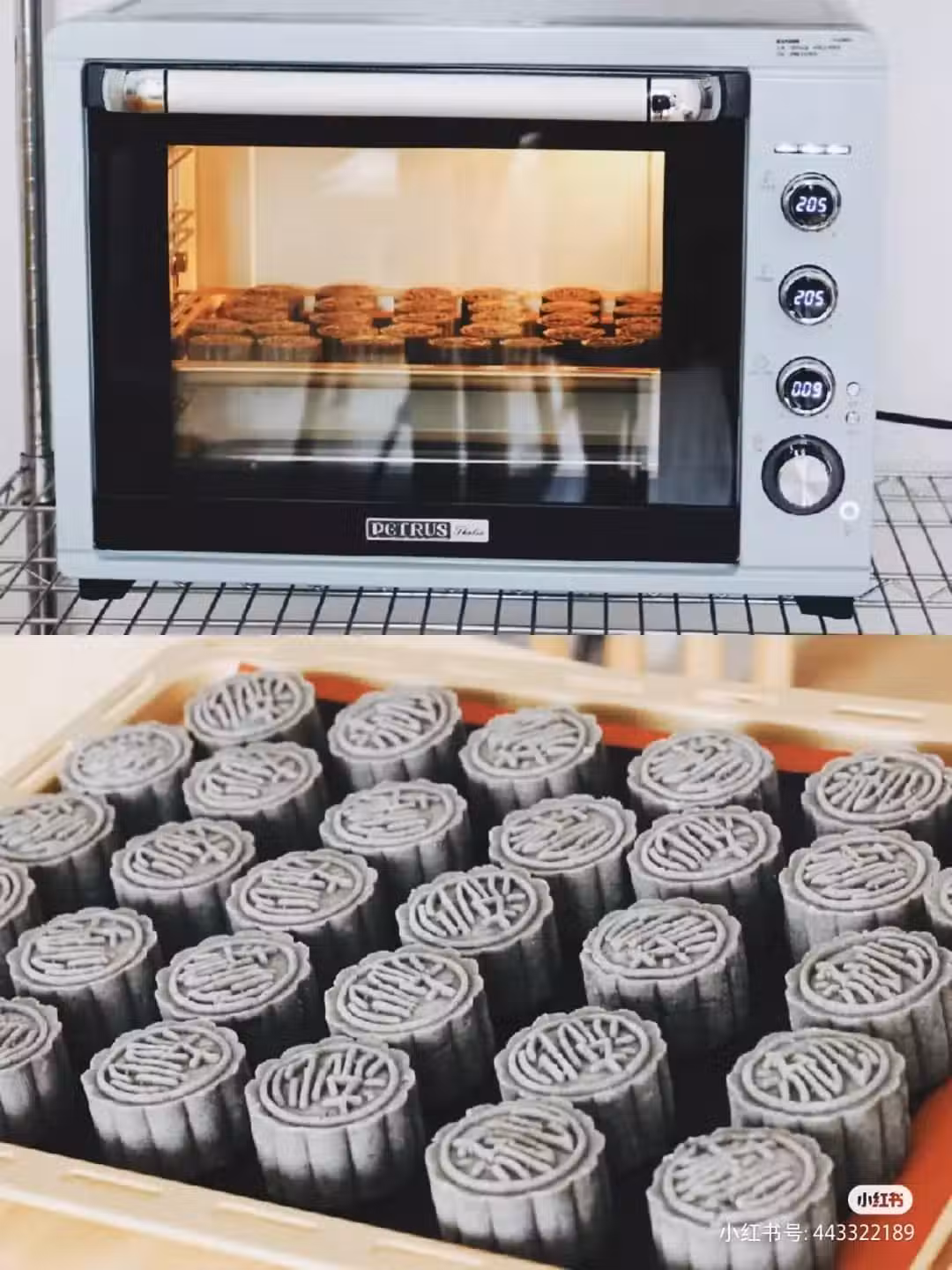 🌈烤好的狀態是這樣的:不塌腰,不鼓包,保留了黑芝麻的灰色原色,餅皮成熟硬的可以拿起來的程度,切開流心狀態非常好!