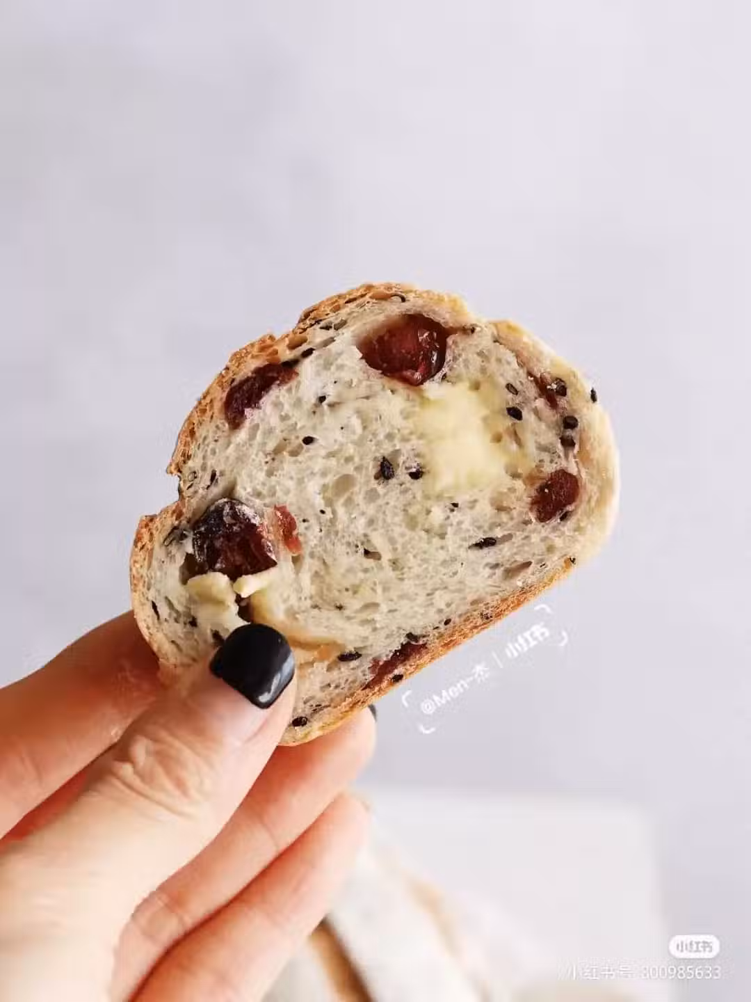 🥖黑芝麻蔓越莓麵包,無油糖無需揉面🉑
