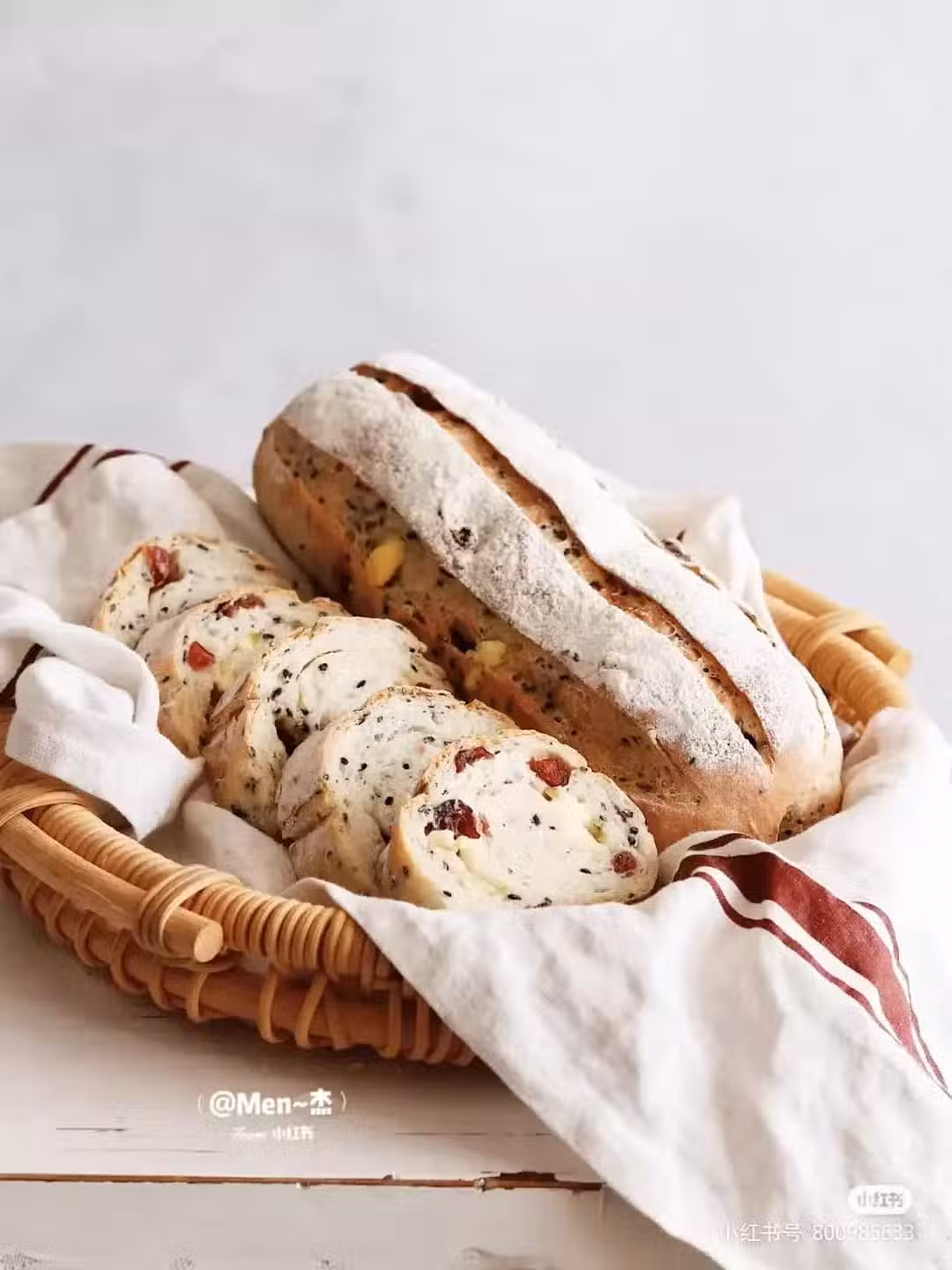 🥖黑芝麻蔓越莓麵包,無油糖無需揉面🉑