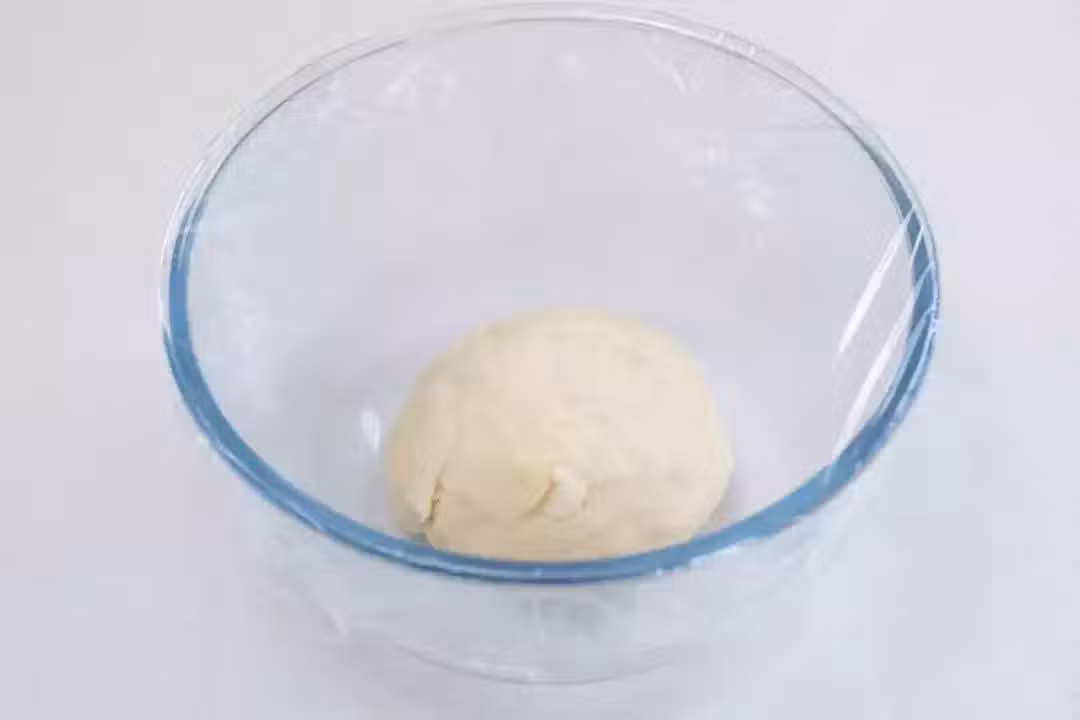 4、然後將麵糰揉圓,不用非常光滑,只要看不到乾粉即可,蓋保鮮膜靜置30分鐘。麵糰經過水合鬆弛,會自然形成一定筋性,並獲得延展性。