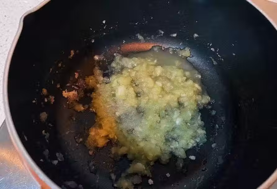 ❸ 然後關火,把其他所有調料一起倒入鍋裡攪拌均勻。