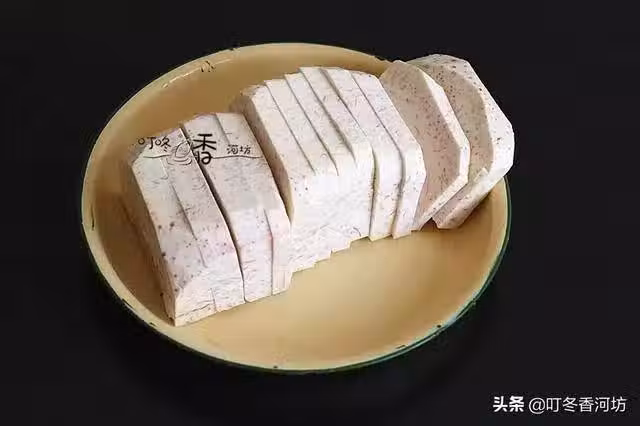 1、香芋去皮沖洗乾淨切片,然後放入蒸鍋,大火蒸20分鐘熟透,起鍋放入大點盆中加少許開水用擀子攪拌成芋頭泥。
