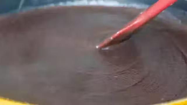 7、當用刮刀在鍋中劃開豆沙後,在鍋內形成一條很深的紋路,能長時間保持的話,這個豆沙就炒的差不多了;