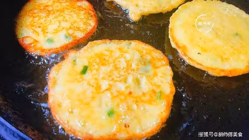 第三步:將平底鍋燒熱後,然後抹少許油到平底鍋上,接著攪拌好的玉米餡倒入在平底鍋中,最後中火將雞蛋玉米餅煎成兩面金黃色即可起鍋食用。煎雞蛋玉米餅時,千萬不要大火煎,用中小火煎,可以防止雞蛋玉米餅糊。