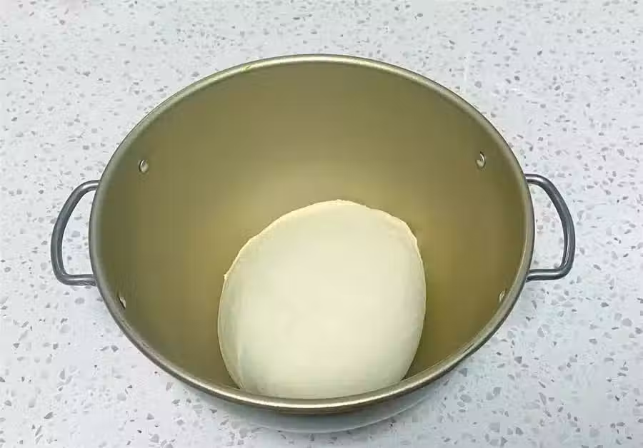 3、發酵好的中種麵團,用手拉開內部組織,呈蜂窩狀態,大約是原麵團的3倍大。