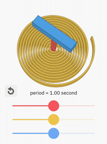 通過調整這些參數,我們可以使該系統以所需的速率振蕩。這種使用帶有附加質量的扭力彈簧的結構正是機械錶用作精確計量時間的理論基礎。擺輪系統由遊絲和擺輪構成,在手錶中,擺輪會以相當高的頻率來回擺動: