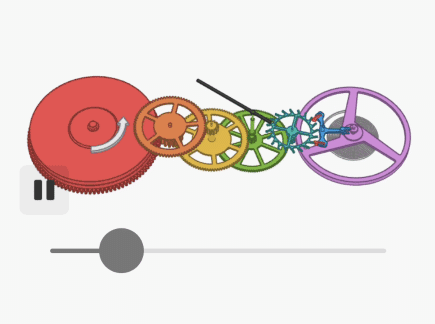 讓我們仔細看看這種互動,它值得更仔細地研究。下面的演示中,將一步步展示擺輪和擒縱叉互動的每一個動作。