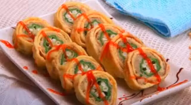 美乃滋1/2小匙、黃芥末醬1/2小匙、秋葵1支、壽司飯適量。