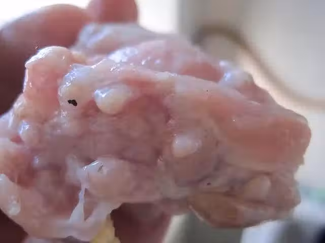 豬身上還有一處地方不能吃,長得像一個個的小疙瘩,又叫「肉棗」、「米豬肉」,這類疙瘩中含有的病菌和毒素也不在少數,用水煮也不能保證去除,建議這樣的豬肉千萬別買!