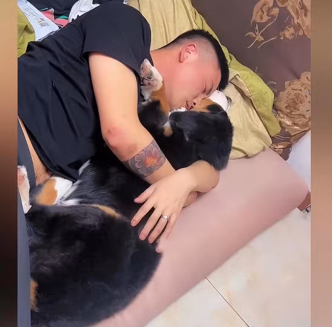 「把狗當成你了!」有網友說,這男子肯定是把狗當成女主人了。