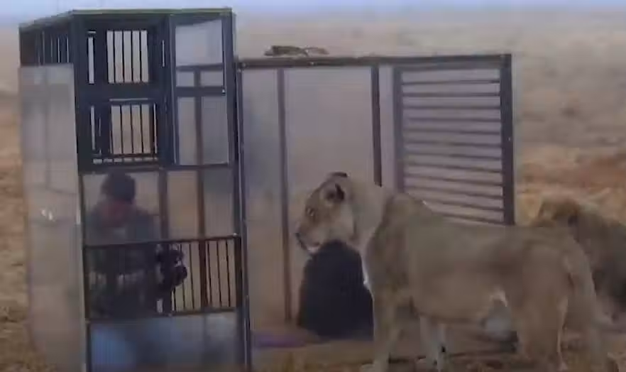 把人關進玻璃籠子裡,周圍全都是獅子,獅子們會做出什麼反應?