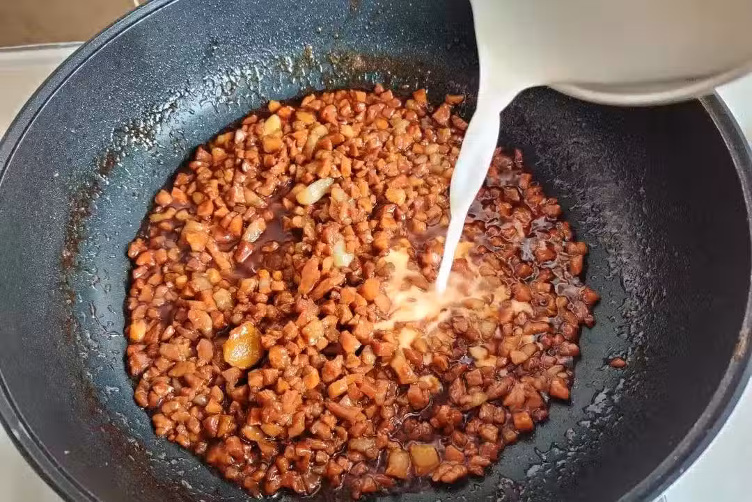 7.翻炒一會芡汁呈透明狀就可以關火盛出了,挑出薑蒜放涼待用