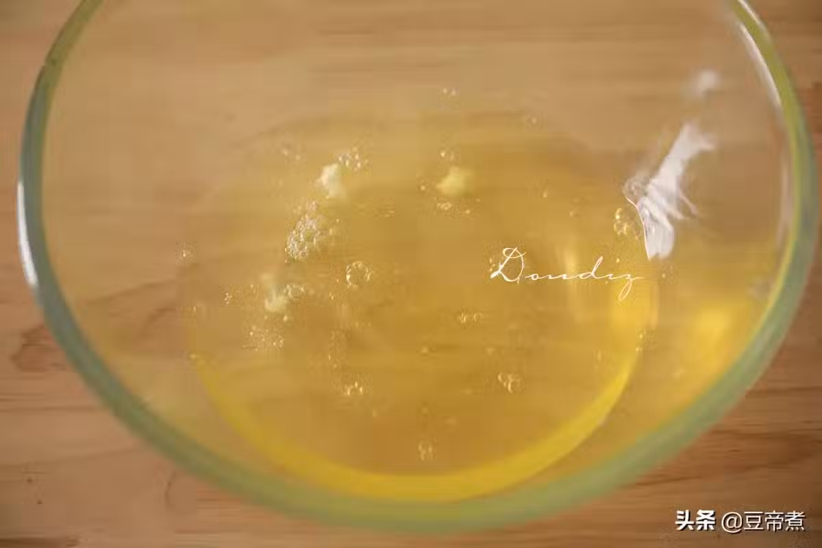 4、麵糊準備好之後,開始打發蛋白。蛋清里加入幾滴檸檬汁或者香草精,然後啟動打蛋器進行打發。