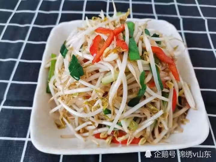 3.開大火爆炒40秒,如果是飯店的大火,15秒就可以了,然後用鍋鏟子翻炒個幾十下,把綠豆芽炒至斷生,再倒入剛才調好的料汁,繼續翻炒個七八下,起鍋前淋入少許明油,簡單翻炒均勻,就可以關火起鍋裝盤了。