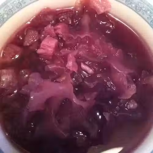 2、銀耳撕成小朵,紫薯切成丁狀,葡萄乾洗凈備用;