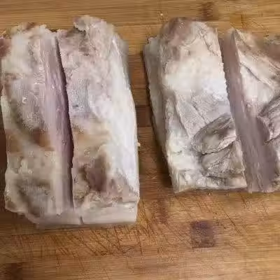 7、在五花肉中間用刀劃開一刀這樣腌制會更容易入味,皮不要切斷哦。