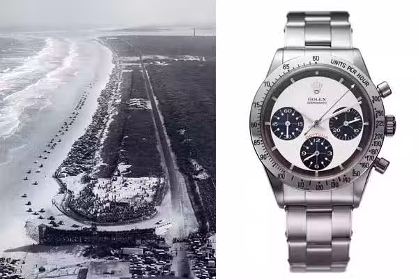 Daytona Beach(左),三眼造型出現在勞力士的迪通拿腕錶之上,1963(右)