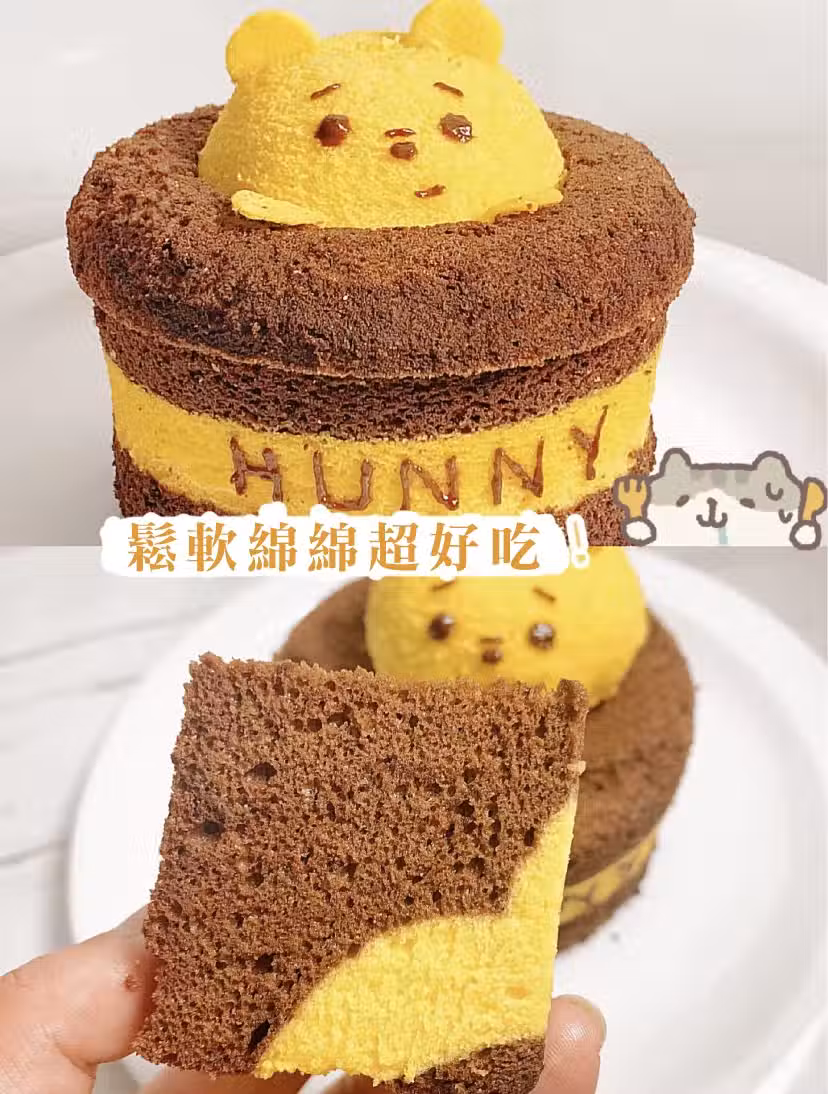 零失敗製作維尼蛋糕!DIY萌度破表「蜜糖罐罐戚風蛋糕」,弄給你身邊的維尼控吧~♡