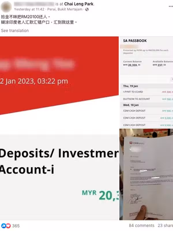 該名網民在留言處回答其他網友的詢問時說,他隨後帶著信件到銀行里簽署同意退款,並在交涉過程中從銀行經理那裡得知該名老人(錯誤匯款者)匯錢過後,才發覺到匯錯存戶口號碼,號碼只差一個字。