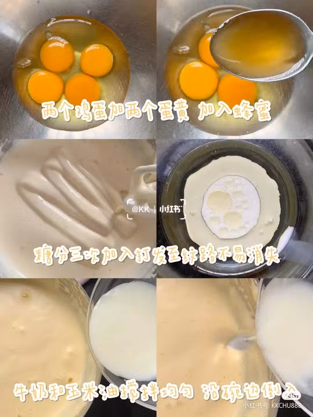1.兩個雞蛋加兩個蛋黃 加入蜂蜜攪拌均勻
