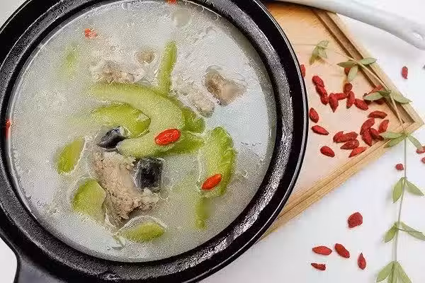 排骨1根(約200g).涼瓜1根(約500g).皮蛋1個、老薑少許、鹽少許、雞精少許、料酒少許.枸杞少許