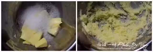 3、分三次加入雞蛋液,每一次都要打發均勻,不要出現蛋油分離。最後呈發白的蓬鬆狀即可。