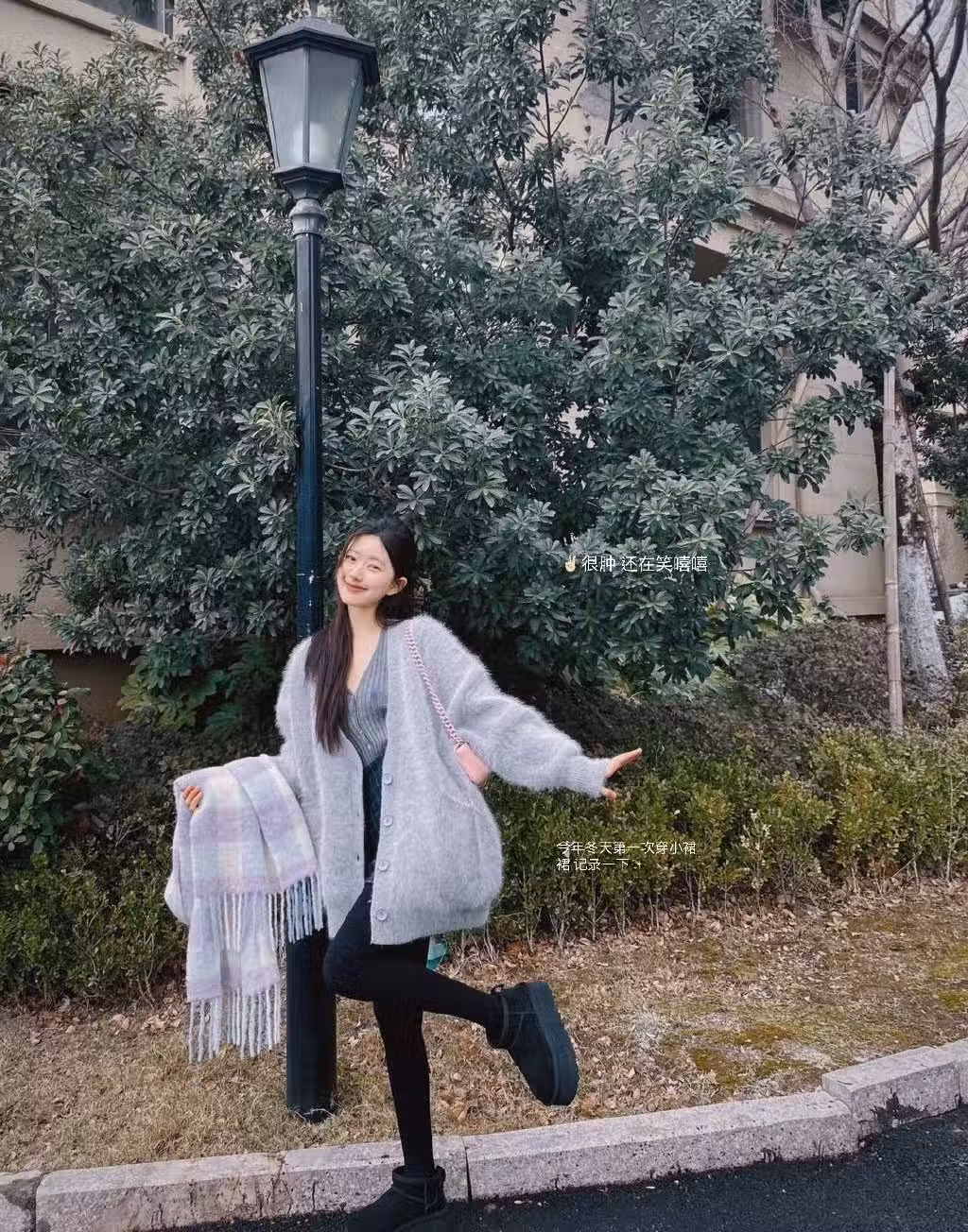 趙露思曬元宵節戶外隨拍 身披毛衣化身活潑小灰兔
