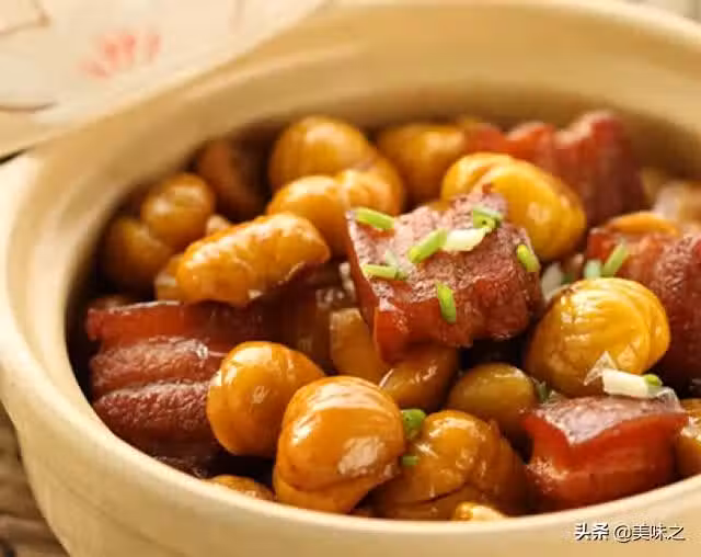 五花肉、板栗、薑片、桂皮、醬油、冰糖、八角、香葉、甘草、油、鹽。