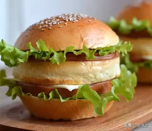 高筋麵粉180克、牛奶115克、酵母2.5克、白糖20克、黃油15克、表面刷牛奶少許、表面撒白芝麻少許、火腿腸4片、生菜葉數片、番茄沙司適量、沙拉醬適量、奶酪片2片。