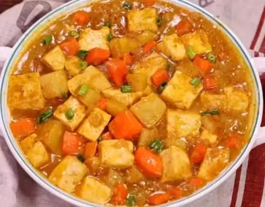豆腐200克,土豆半個,胡蘿蔔半根,洋蔥30克,咖喱塊2個,牛奶15ml
