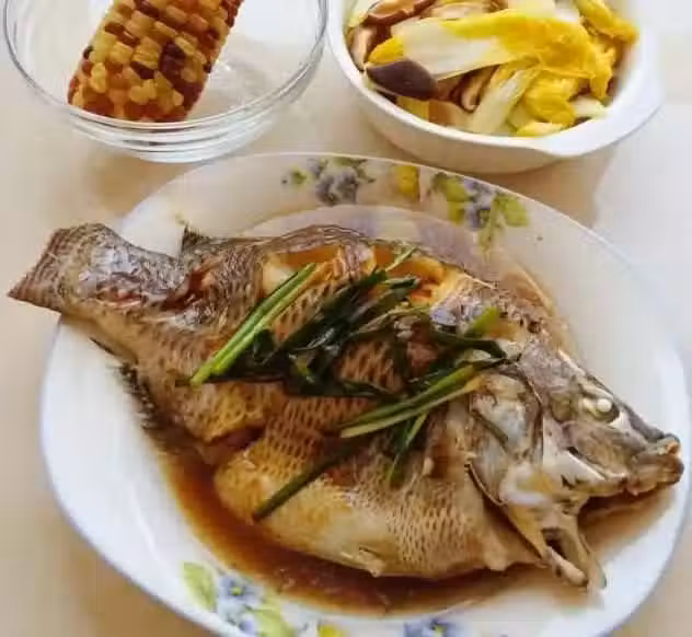 魚(隨意什麼魚,我買的羅非魚)1條(約兩斤);料酒小半碗;薑一塊;生抽少許;鹽兩匙;糖一小撮(三個手指捏起的量);蠔油少許;蔥一小把