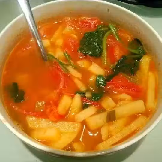 用料:馬鈴薯、番茄、食鹽、味精、大蔥、細香蔥、香油、雞蛋