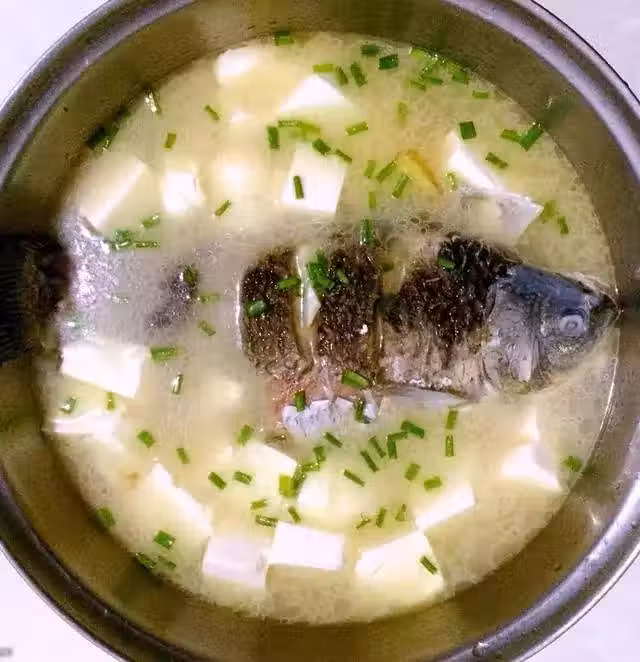 用料:鯽魚、豆腐、香蔥、姜、鹽、芝麻油、黑胡椒