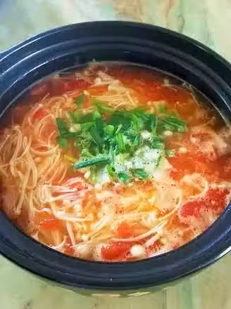 5.水開後,加入金針菇