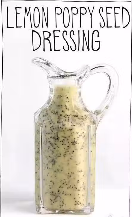 食材:橄欖油100ml、檸檬汁45ml、第戎芥末醬15ml、罌粟籽15g、楓糖漿15ml
