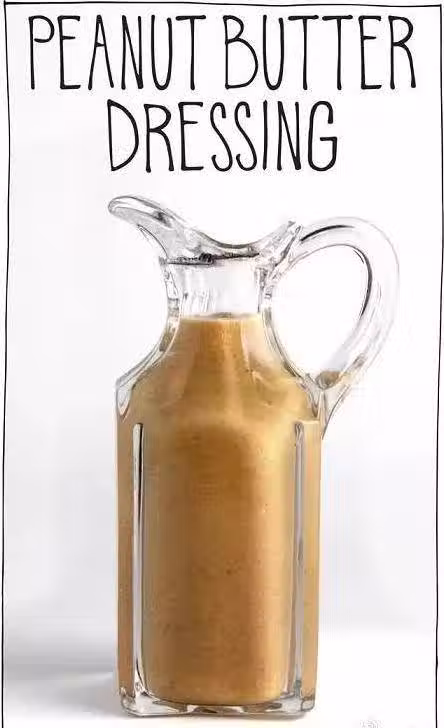 食材:花生醬50ml、營養酵母粉(可選)30g、醬油15ml、楓糖漿15ml、辣椒粉(可選)少量、水30~45ml