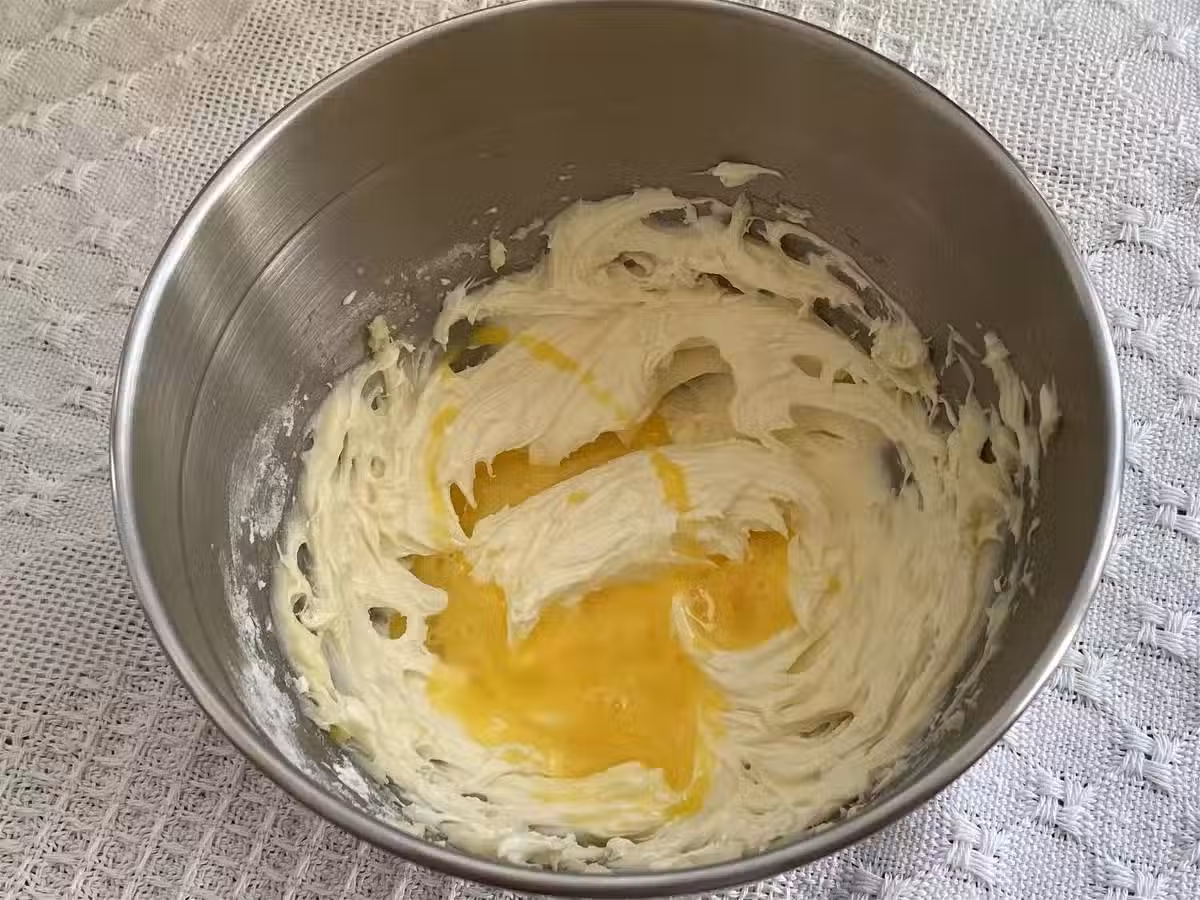 5.篩入全部粉類,用刮刀壓拌均勻。