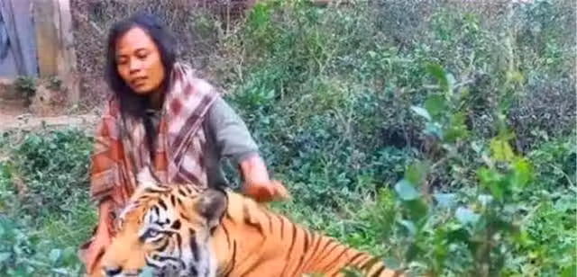 此前女子的大聲呼喊,也引來隨行人員的救援,但是眼前的這一幕卻驚呆了眾人,此時的女子也已經認出眼前這只如小山一般的猛獸,就是在數年前被自己救助後,朝夕相處的虎仔。出乎意料的是,女子沒能想到當年的那隻虎仔,已經長成了頂天立地的巨獸了,頗有百獸之王威風凜凜的氣勢。老虎也通過氣味辨識到女子正是此前數年陪伴的人了,這才收回巨口尖牙,露出憨態,並不斷向女子撒嬌。
