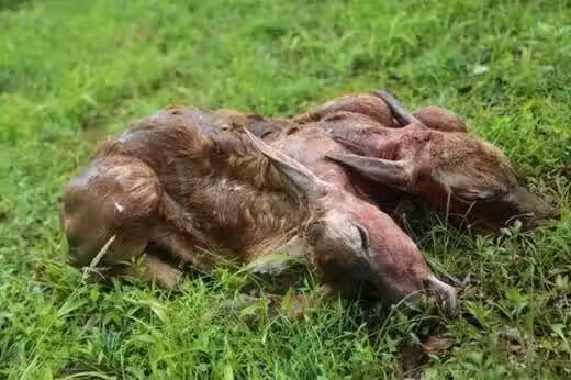 仔細一看直接傻眼了,小羚羊有兩個頭,而且由於在羚羊媽媽的肚子裡憋得時間比較久,已經奄奄一息。