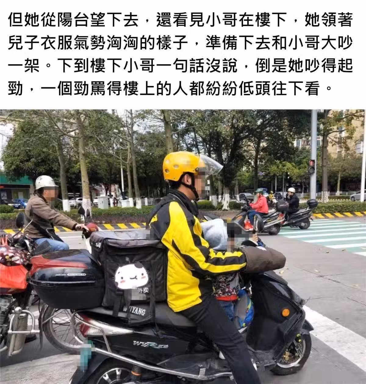 外賣遲到1小時才來!生氣準備給差評 5歲兒子指指「騎手的車」,後寶媽愣了 :希望他能原諒我
