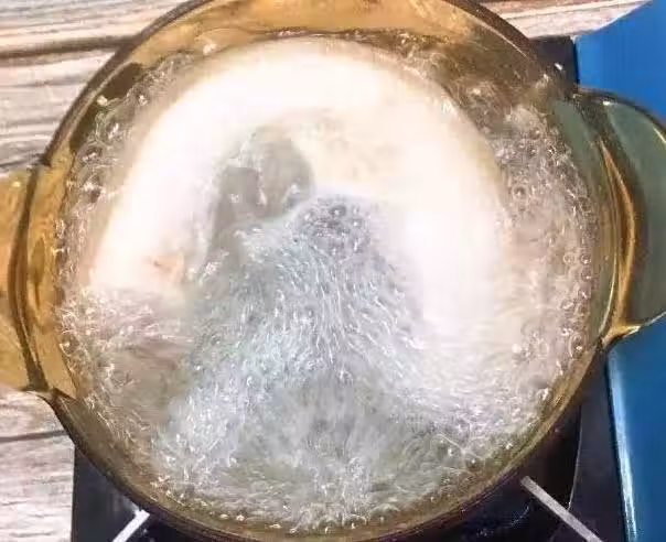第二步,等到時間到後,再用筷子[插·入]五花肉裡面,如果可以[插·入]了,先不要著急取出,而是讓五花肉在鍋中再燜15分鐘,這樣就可以讓五花肉更加的軟爛,吃起來的口感也會更好,趁著這段時間,可以將大蒜去皮切成碎末放到碗中,往裡面加入辣椒粉,白芝麻,倒入燒熱的食用油,這樣就製作成了香辣紅油。