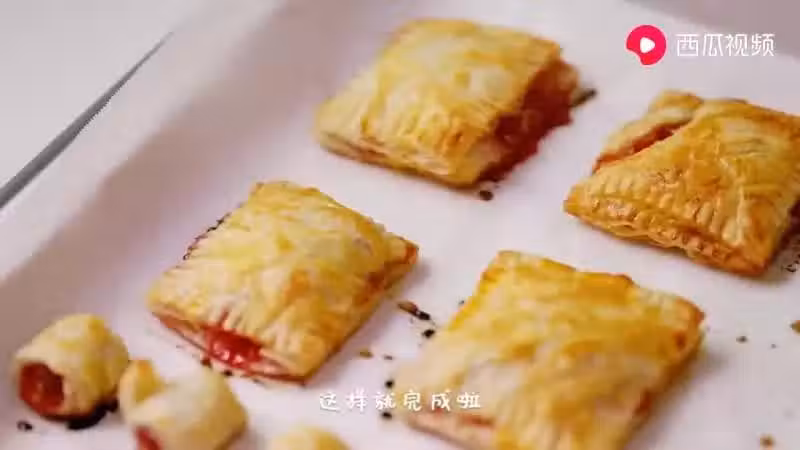 (二)手抓餅切成正方形,再分半,一半放入草莓醬,另一半蓋上然後叉子壓邊封口,放入冰箱冷凍20分鐘