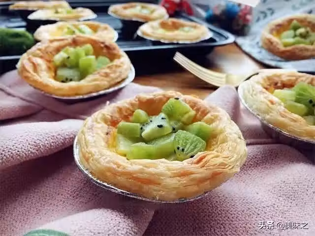 8、蛋撻皮非常起酥,加入黃油的蛋撻液經烤制後香味更濃郁,加上綠油油的奇異果,美味難擋。