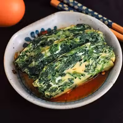 菠菜200克、雞蛋3個、胡椒粉1/2小勺、料酒1小勺、食鹽1/2小勺、澱粉15克。