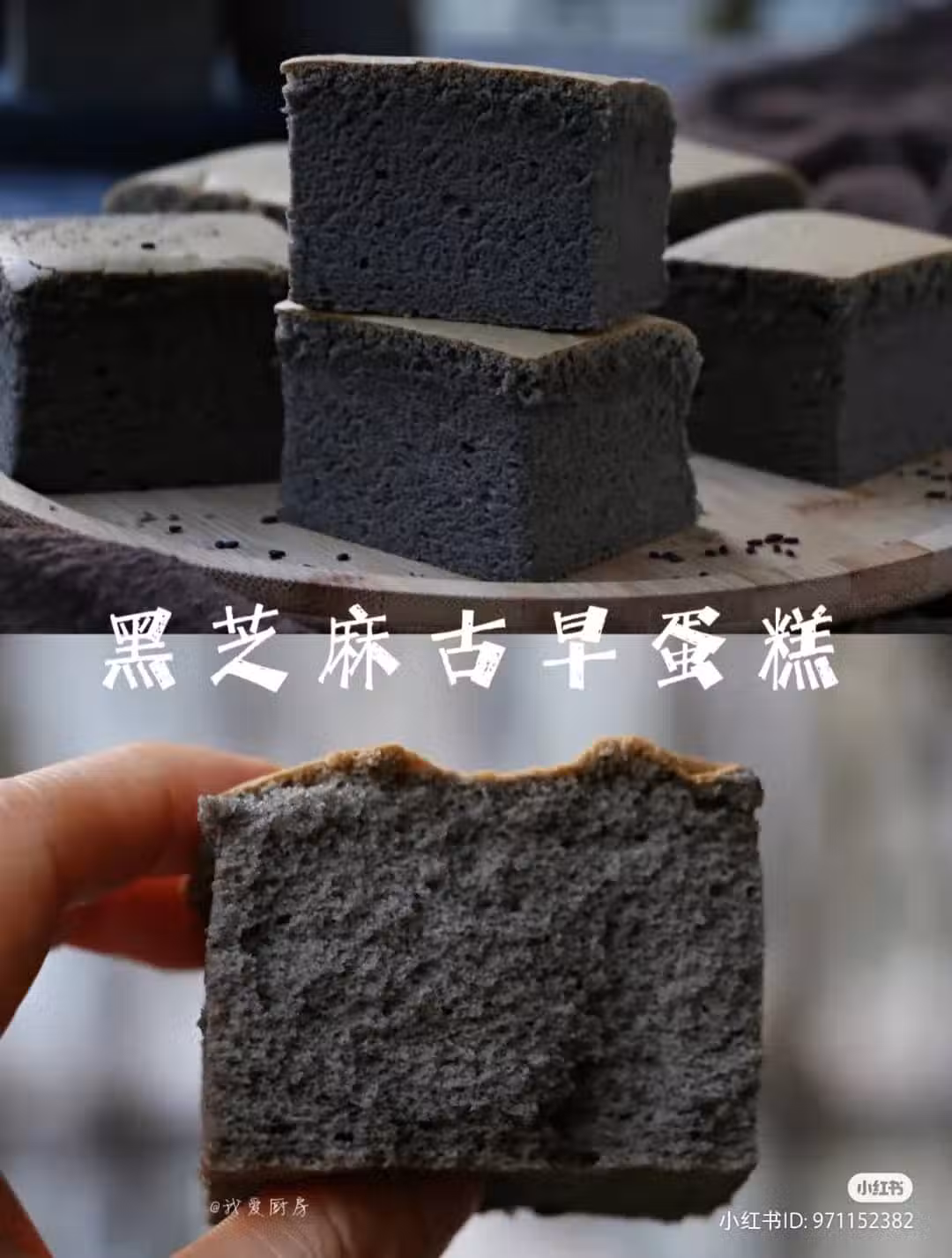 超級香!口感綿潤,黑芝麻古早蛋糕