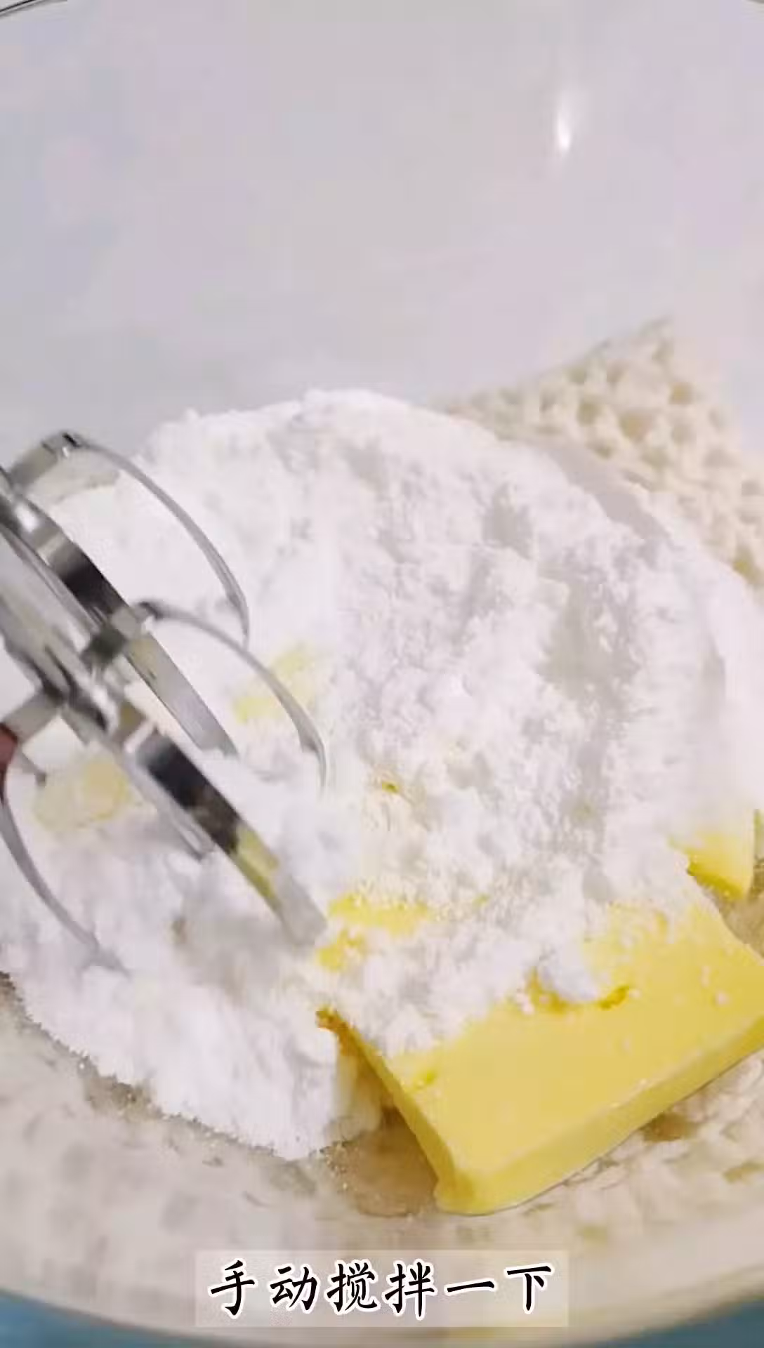 步驟2:黃油提前軟化好,加入糖粉和鹽,攪拌一下,再打發到發白