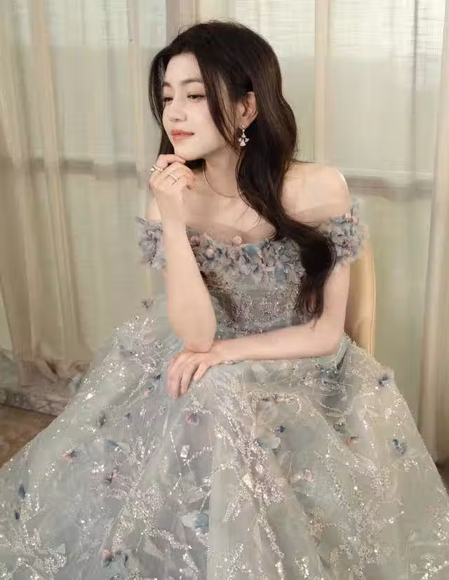 禮服採用了一字肩的剪裁,露出了陳妍希圓潤白皙的肩頭、優越的肩頸線與精緻的鎖骨,真的非常凸顯身材,而且一字領口的部分還滿鋪了立體花朵的點綴,這就能注入幾分可愛俏皮的韻味,女性特質十足,還能起到一定的修飾作用,有效避免了走光與暴露。