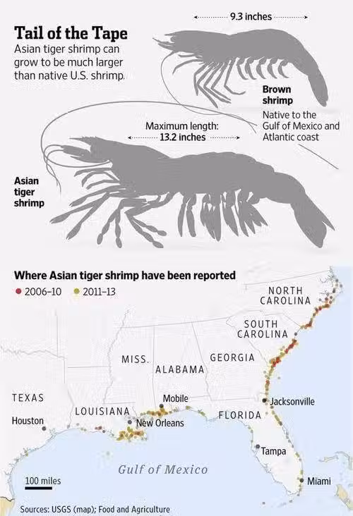 比亞洲鯉魚還猛:跟手臂一樣大的亞洲虎蝦,美國人已經無計可施