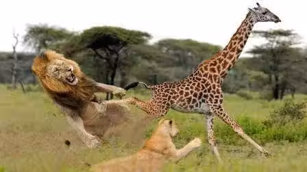 而對長頸鹿唯一的威脅就是獅子,但是,對於獅子來說,即使狩獵長頸鹿也是一件危險的事情,長頸鹿的長腿具有很大的爆發力,能踹斷獅子的肋骨,所以獅子只能依靠其他獅子消耗長頸鹿的體力,最後由強大的雄獅跳上長頸鹿的背部才能完成一次獵殺活動,這個過程稍有不慎對獅子就有受傷的危險。