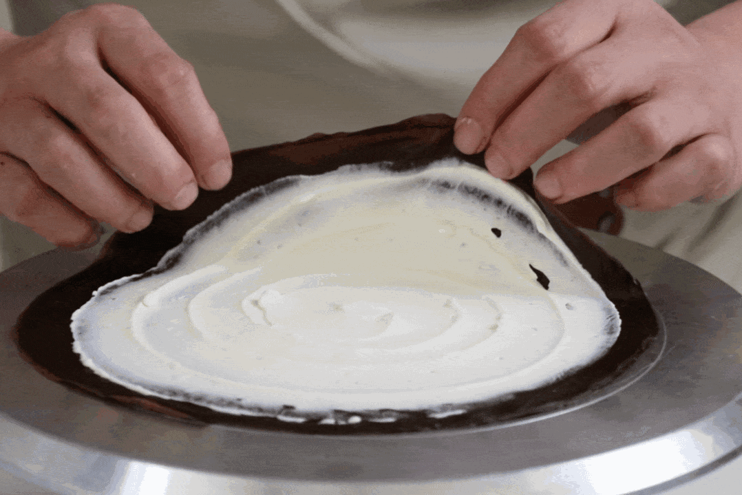 08. 全部折疊完後,表面再擠一層香緹奶油,用抹刀抹平整。